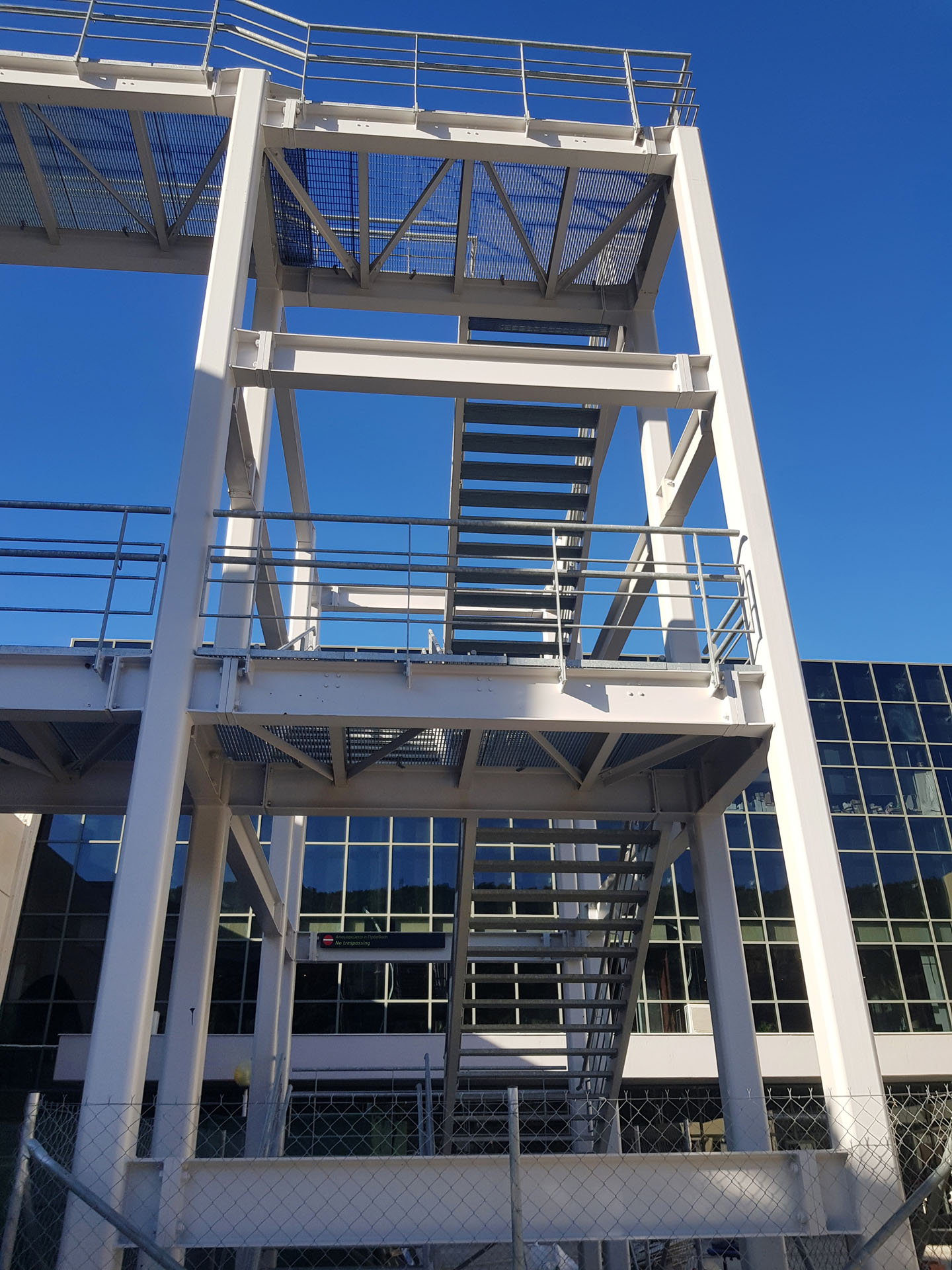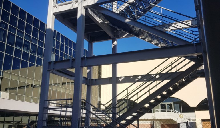 Μεταλλική πεζογέφυρα, που επιτρέπει την ασφαλή και άνετη προσπέλαση των πεζών από τη μία πλευρά του δρόμου στην άλλη.