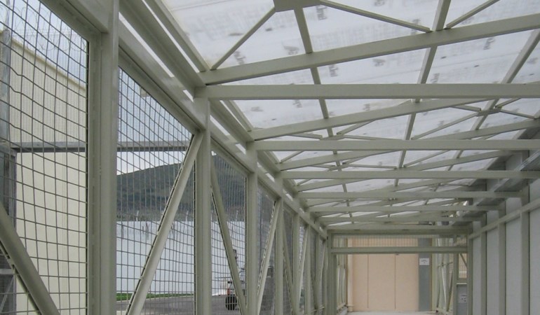 Μεταλλική πεζογέφυρα, που επιτρέπει την ασφαλή και άνετη προσπέλαση των πεζών από τη μία πλευρά του δρόμου στην άλλη.