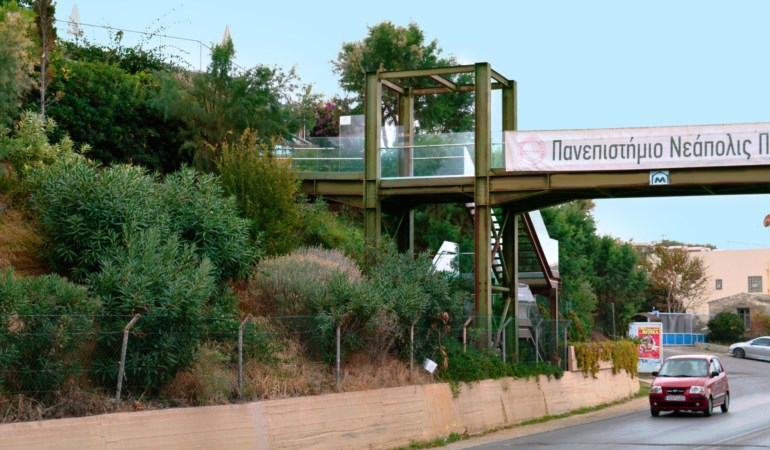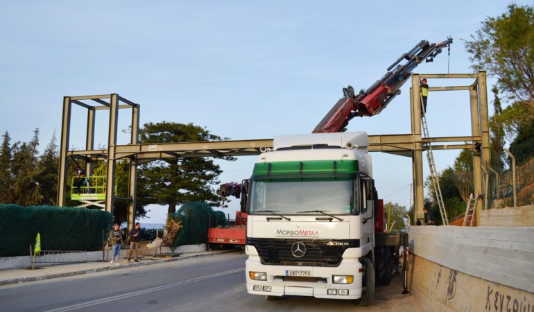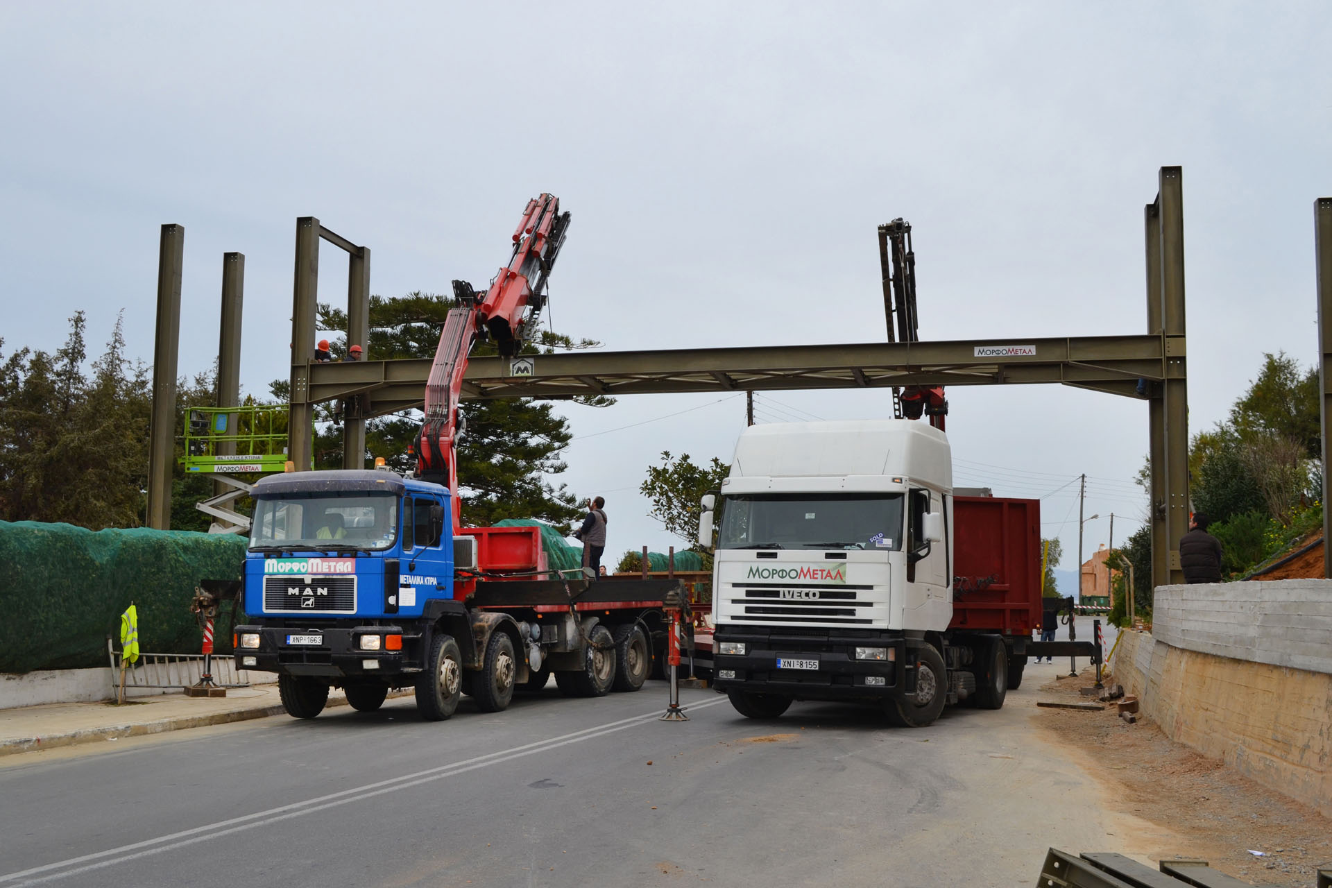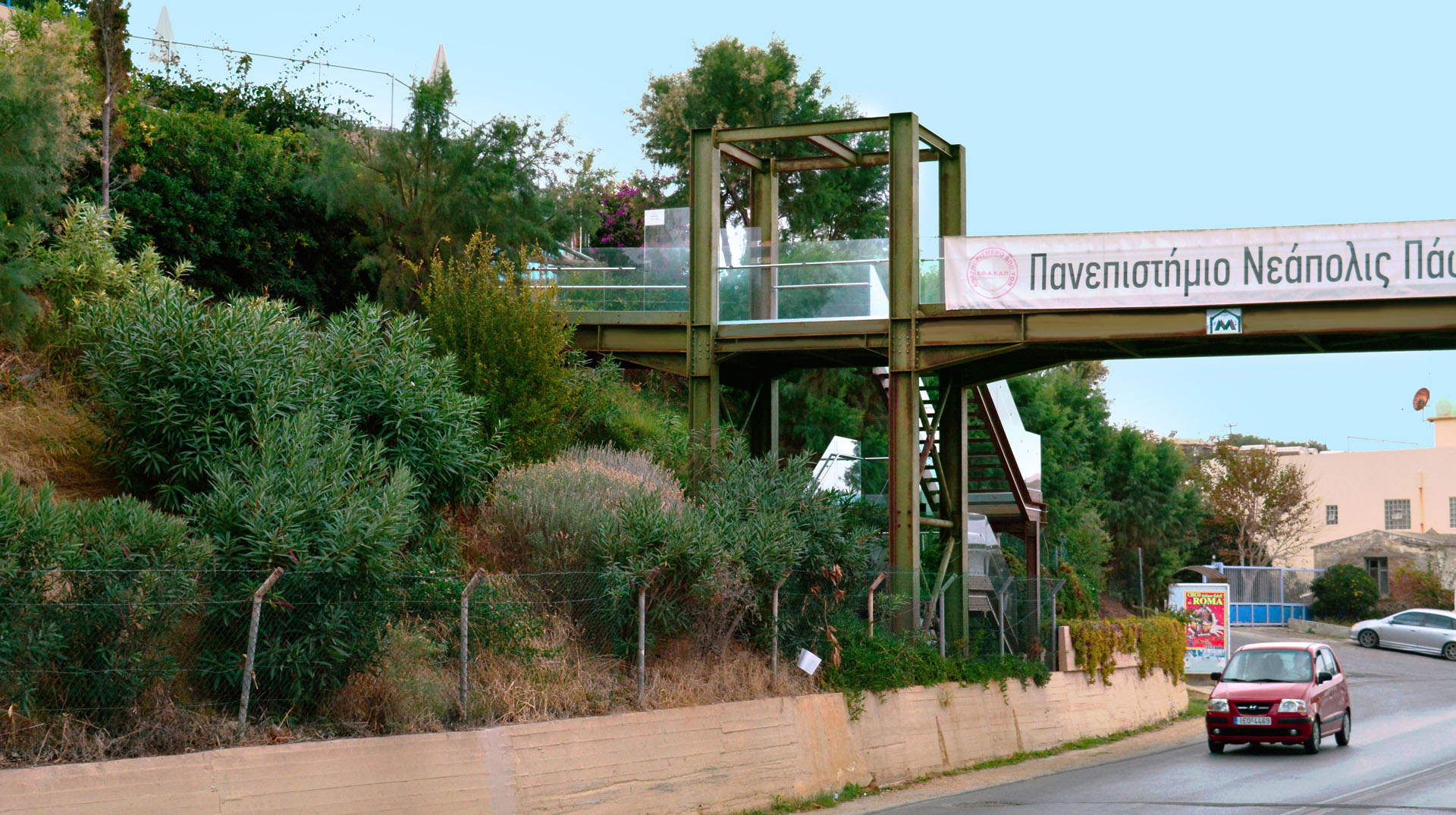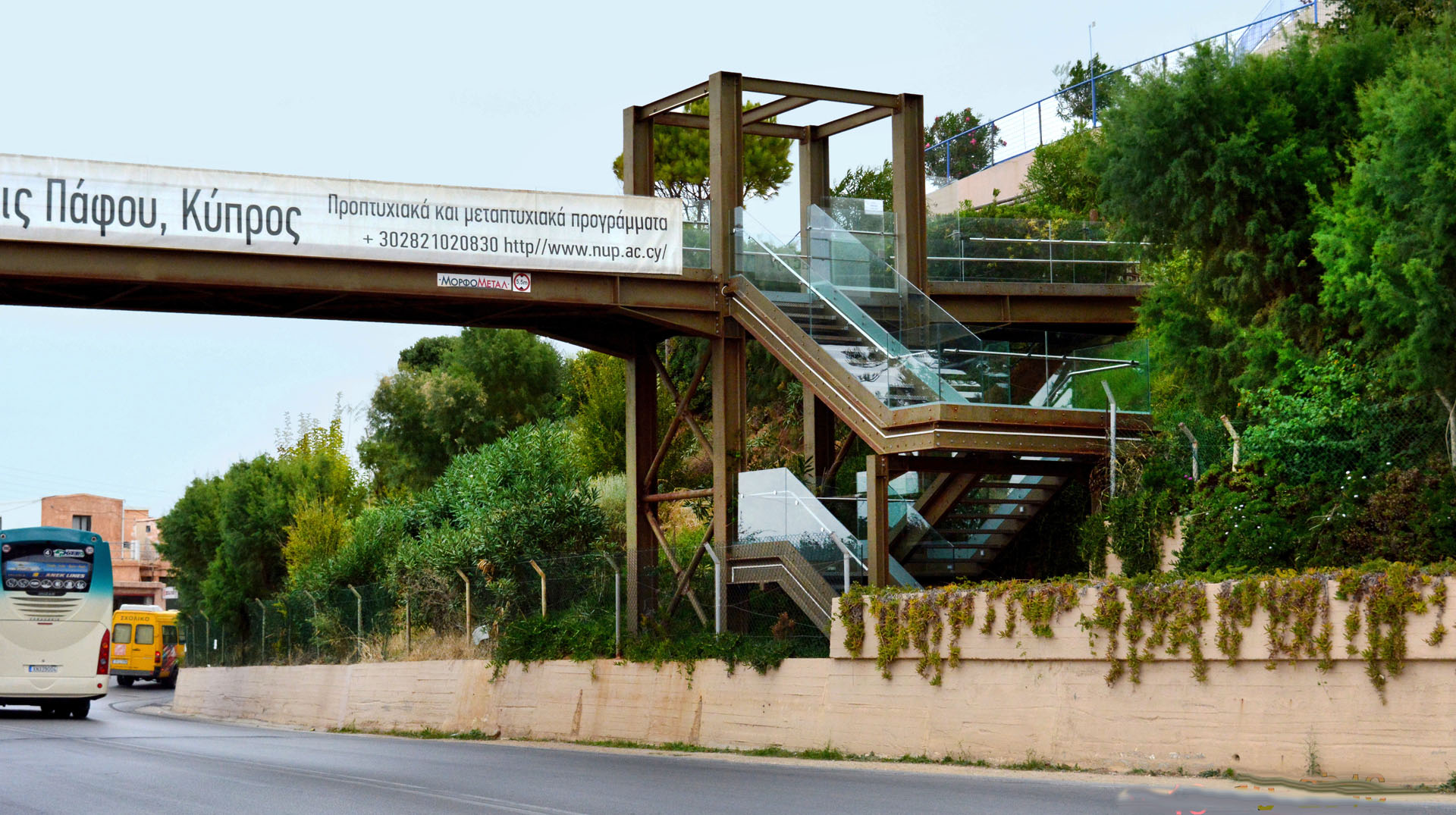Μεταλλική πεζογέφυρα, που επιτρέπει την ασφαλή και άνετη προσπέλαση των πεζών από τη μία πλευρά του δρόμου στην άλλη.