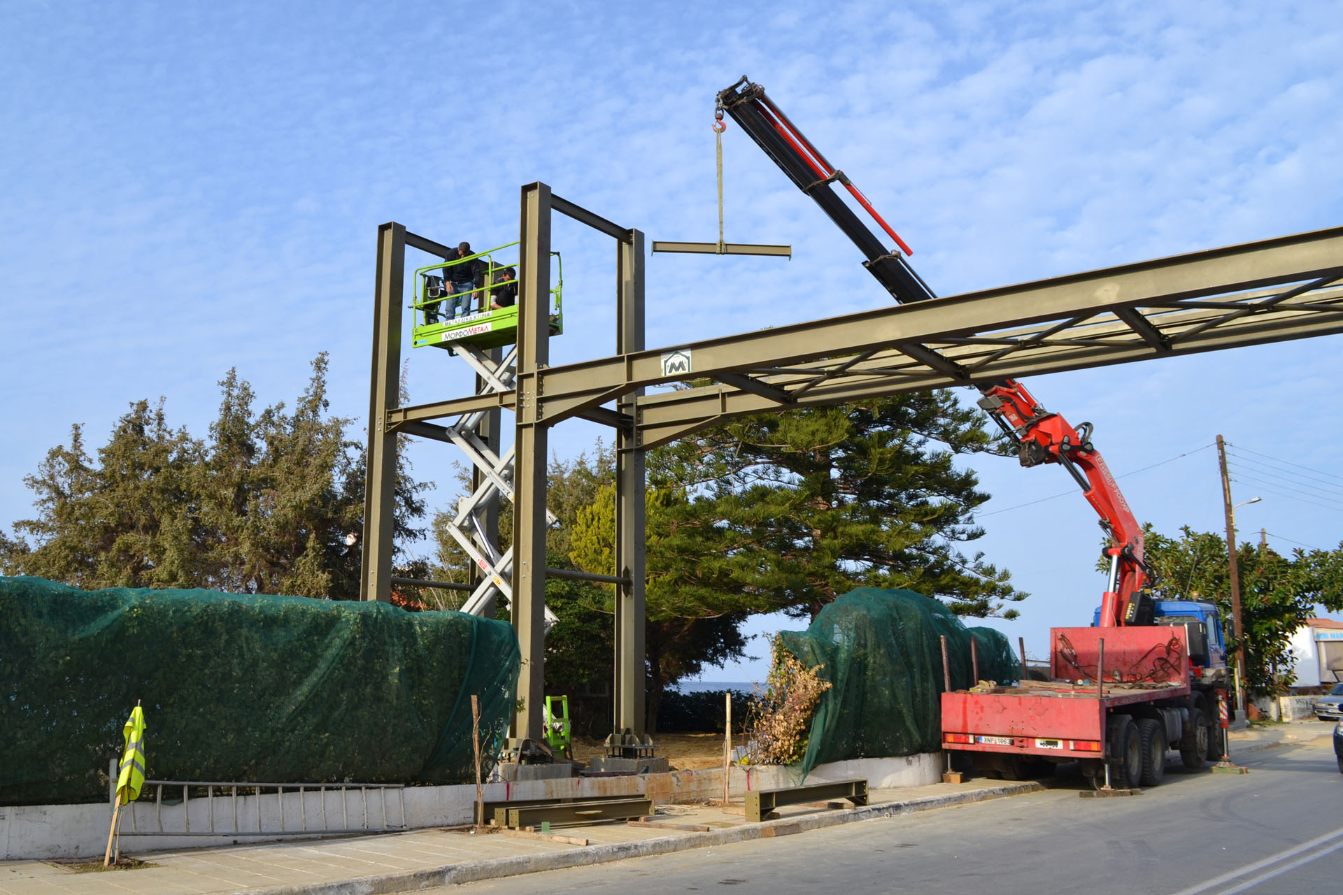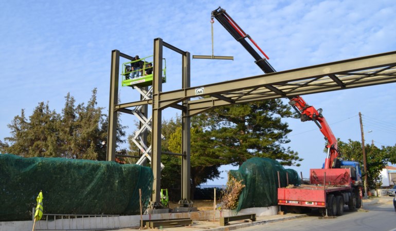Κατασκευή και τοποθέτηση της νέας στέγης στη Δημοτική Αγορά Χανίων, στο πλαίσιο του έργου αποκατάστασης του κτηρίου.