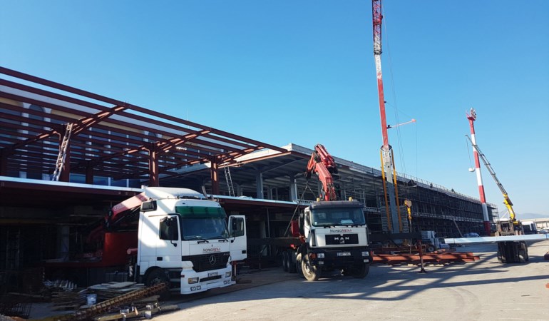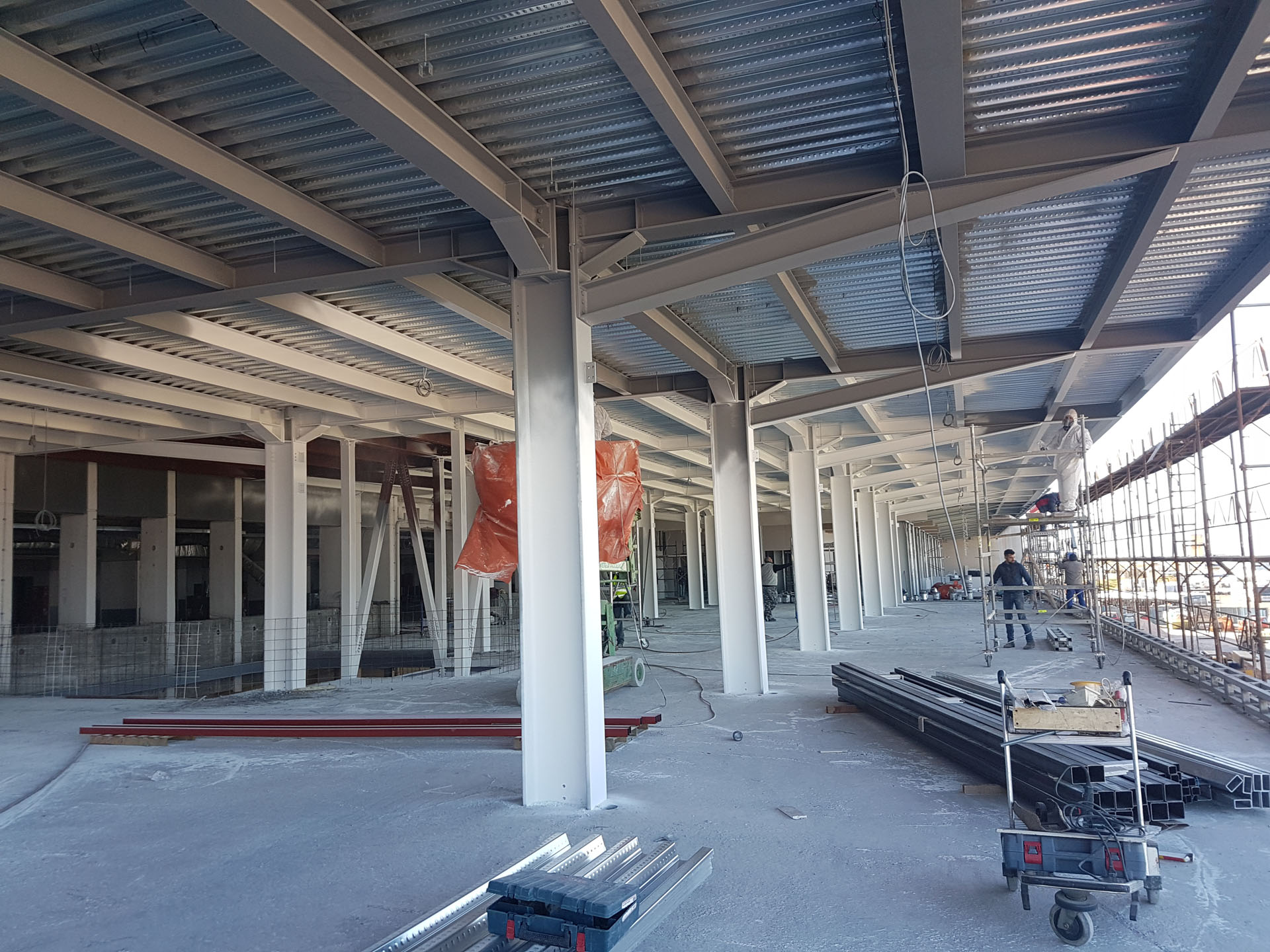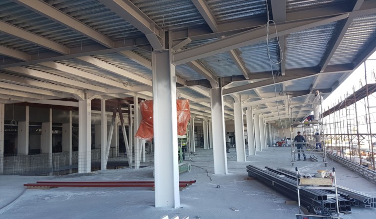 Κατασκευή και τοποθέτηση της νέας στέγης στη Δημοτική Αγορά Χανίων, στο πλαίσιο του έργου αποκατάστασης του κτηρίου.