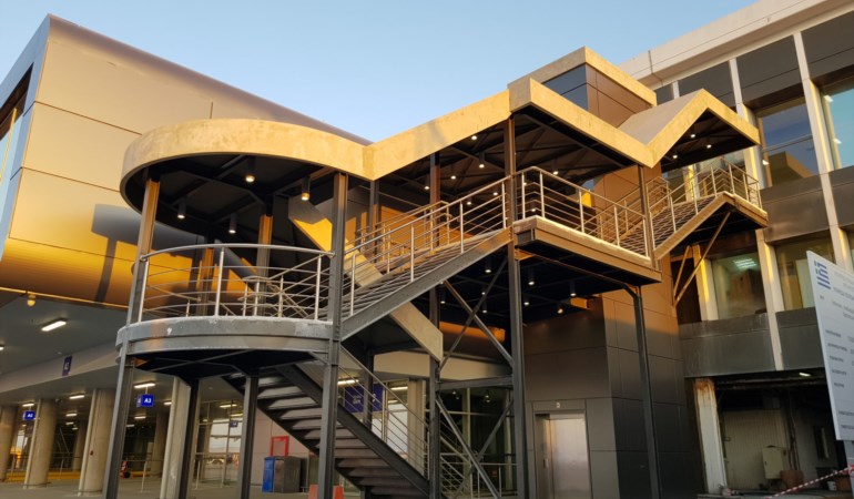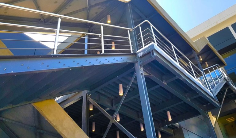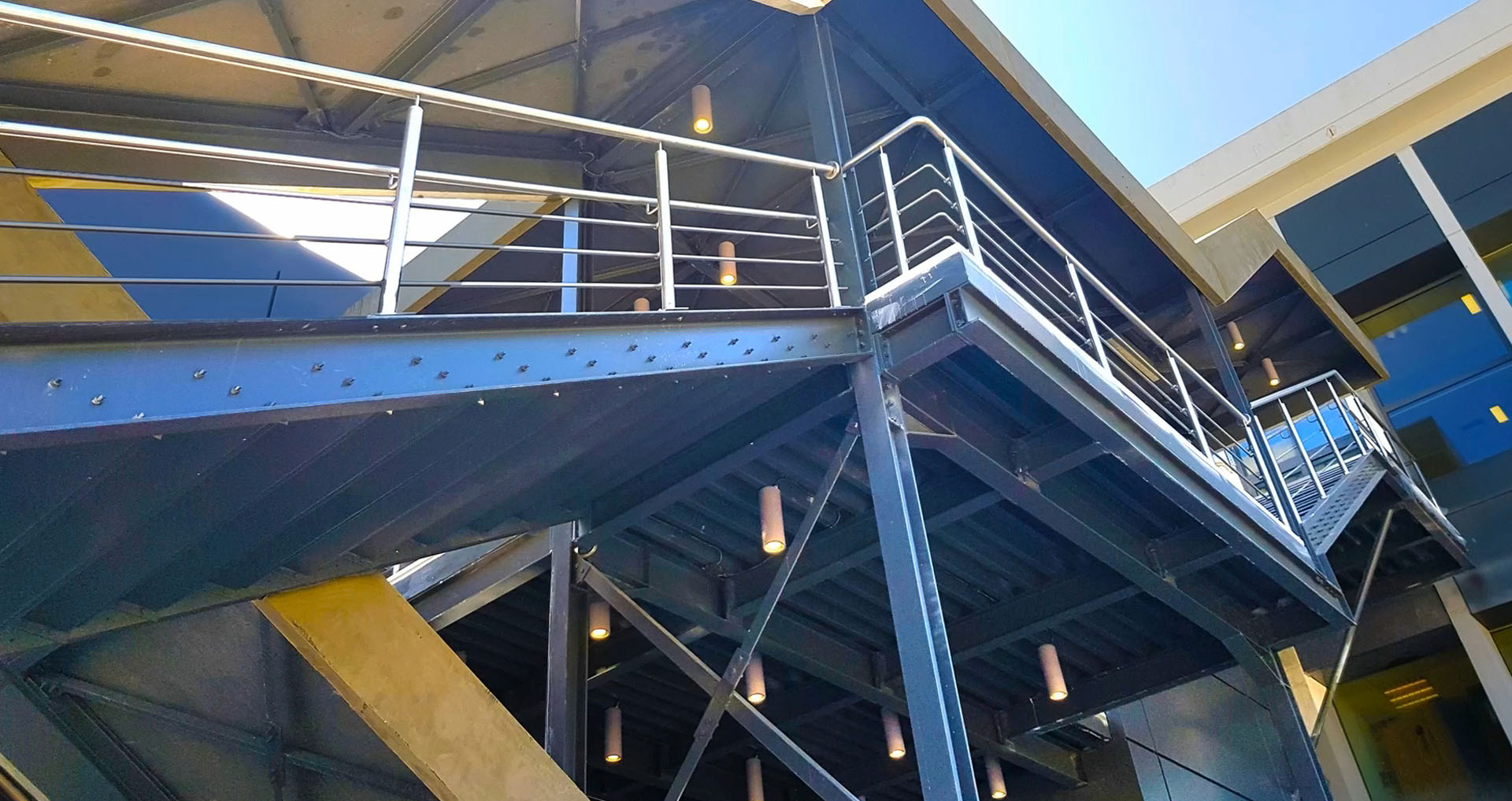 Μεταλλική πεζογέφυρα, που επιτρέπει την ασφαλή και άνετη προσπέλαση των πεζών από τη μία πλευρά του δρόμου στην άλλη.