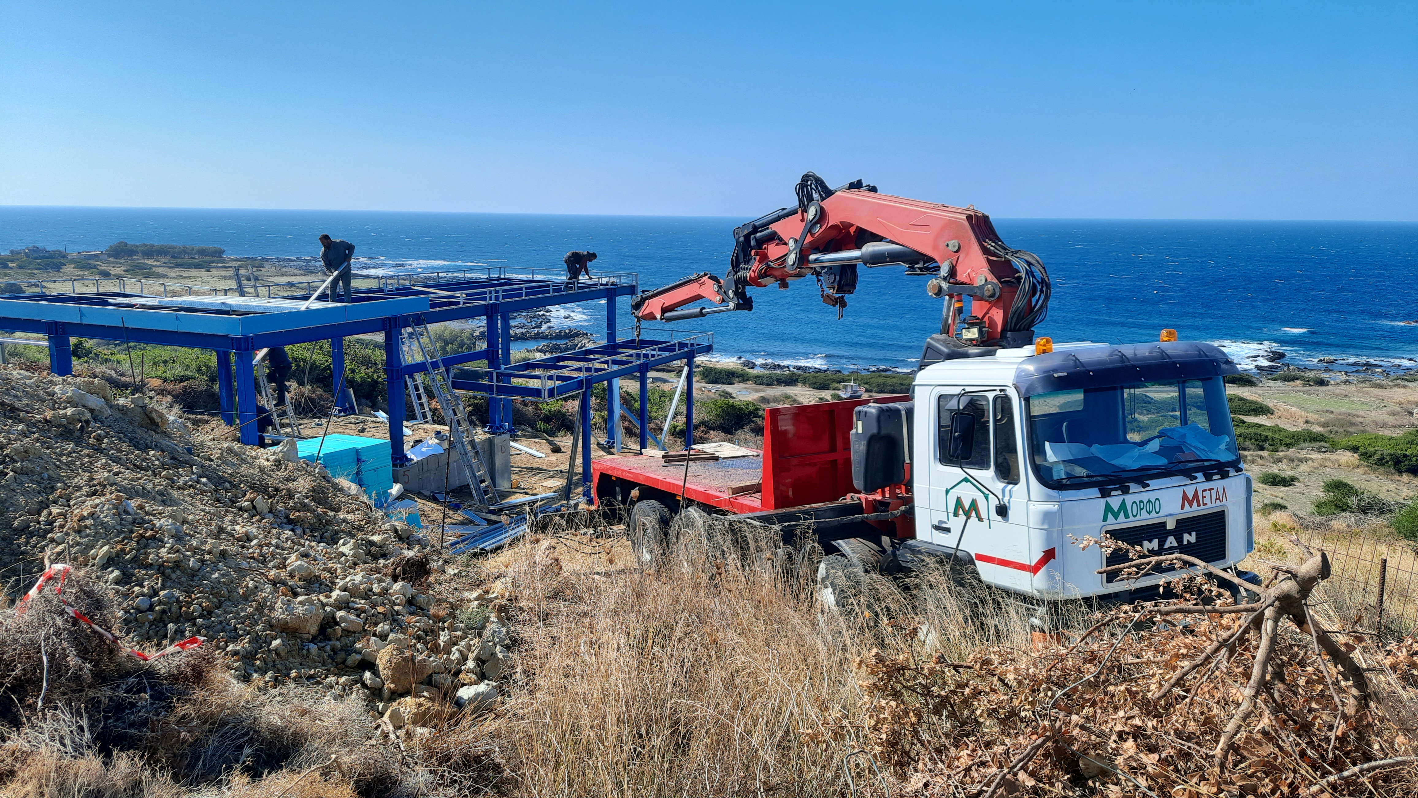 Κατασκευή και τοποθέτηση της νέας στέγης στη Δημοτική Αγορά Χανίων, στο πλαίσιο του έργου αποκατάστασης του κτηρίου.
