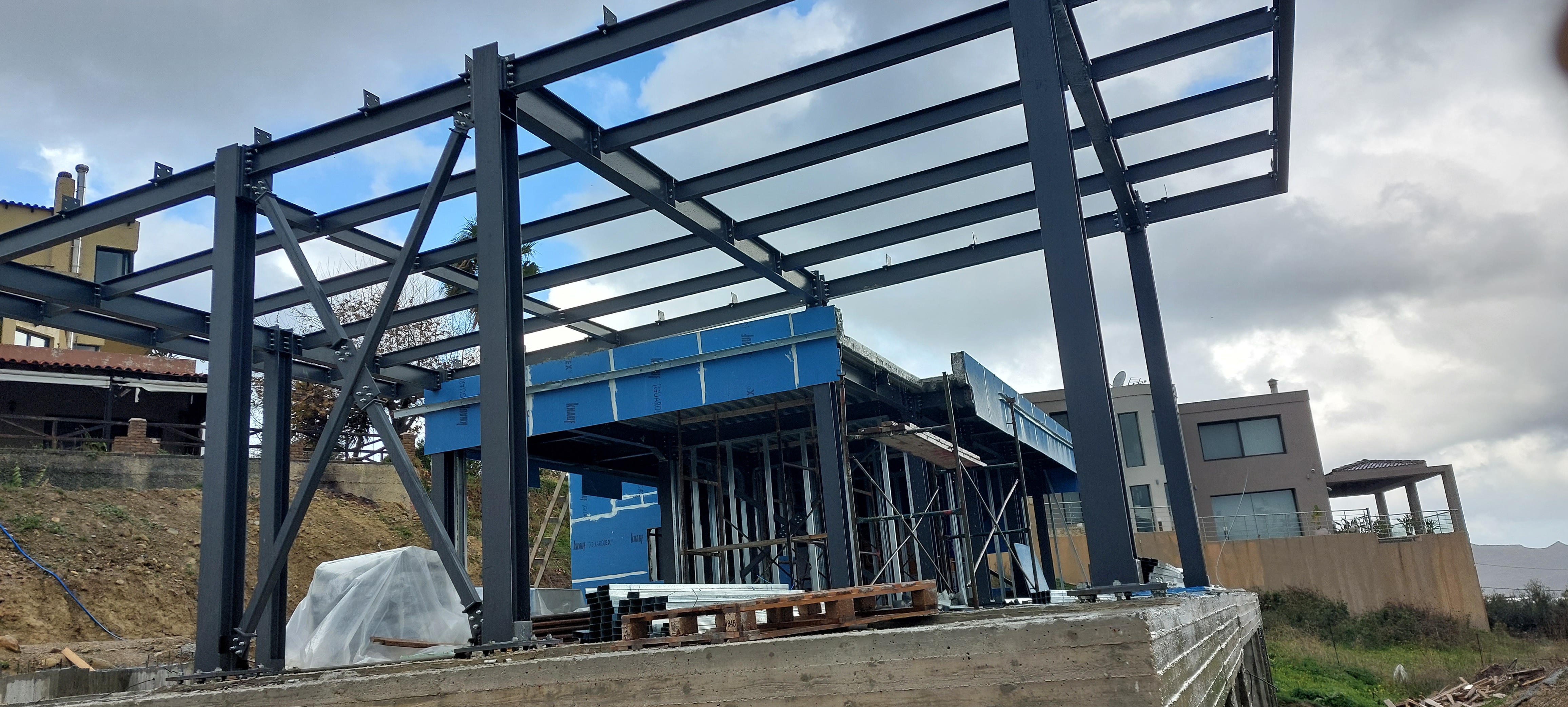 2 διώροφες μεταλλικές κατοικίες με υπόγειο τουριστικής χρήσης συνολικού εμβαδού 290τ.μ.