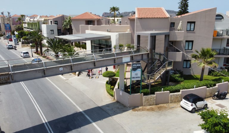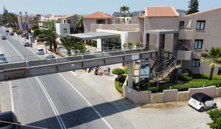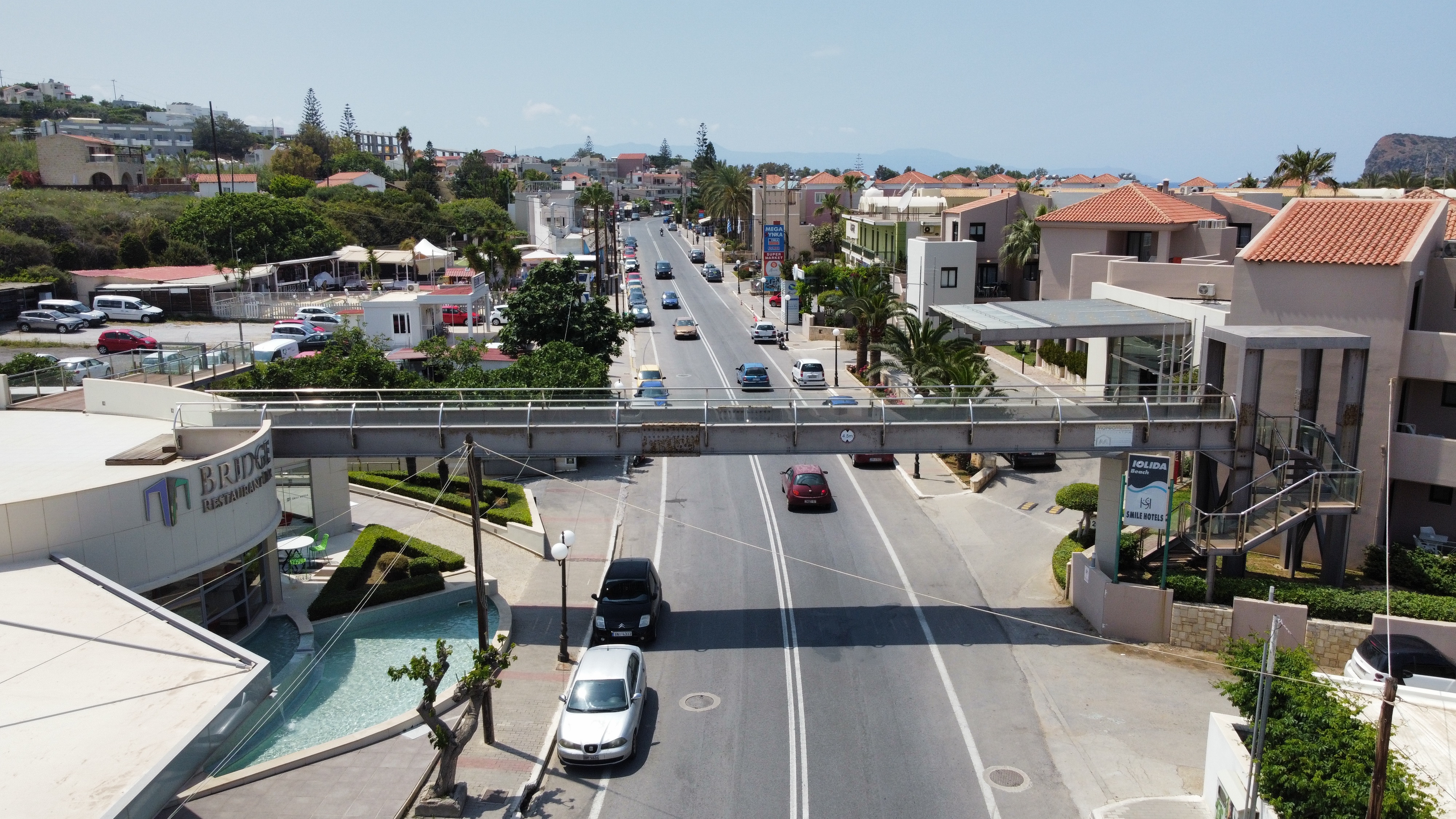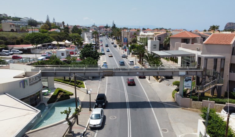 Μεταλλική πεζογέφυρα, που επιτρέπει την ασφαλή και άνετη προσπέλαση των πεζών από τη μία πλευρά του δρόμου στην άλλη.