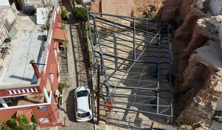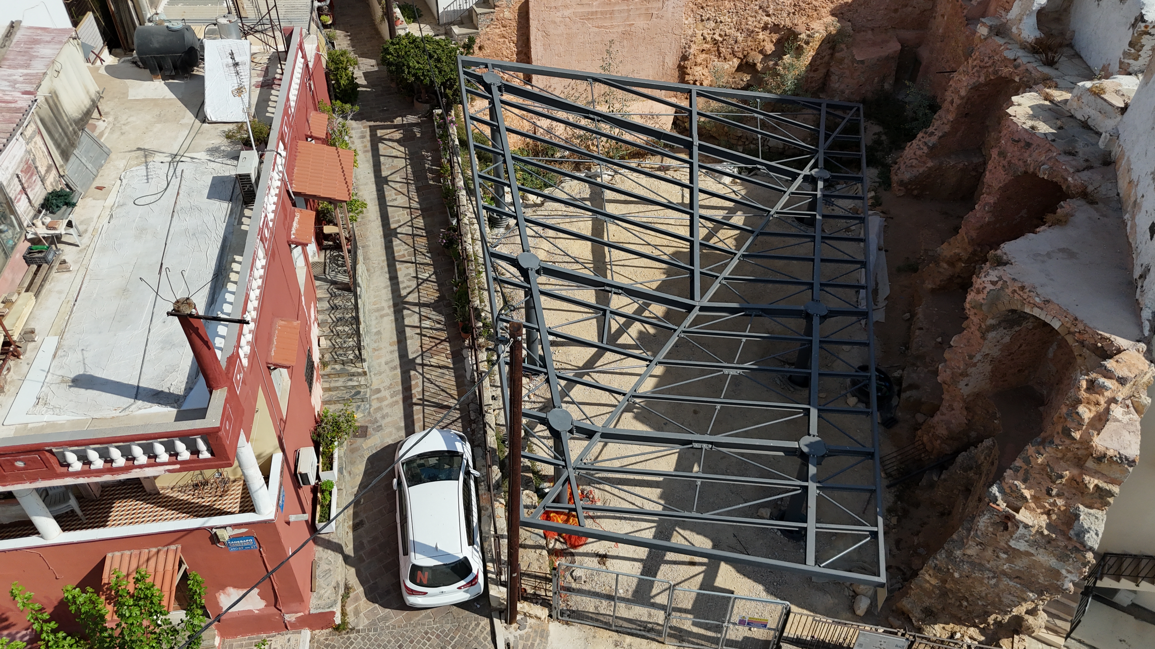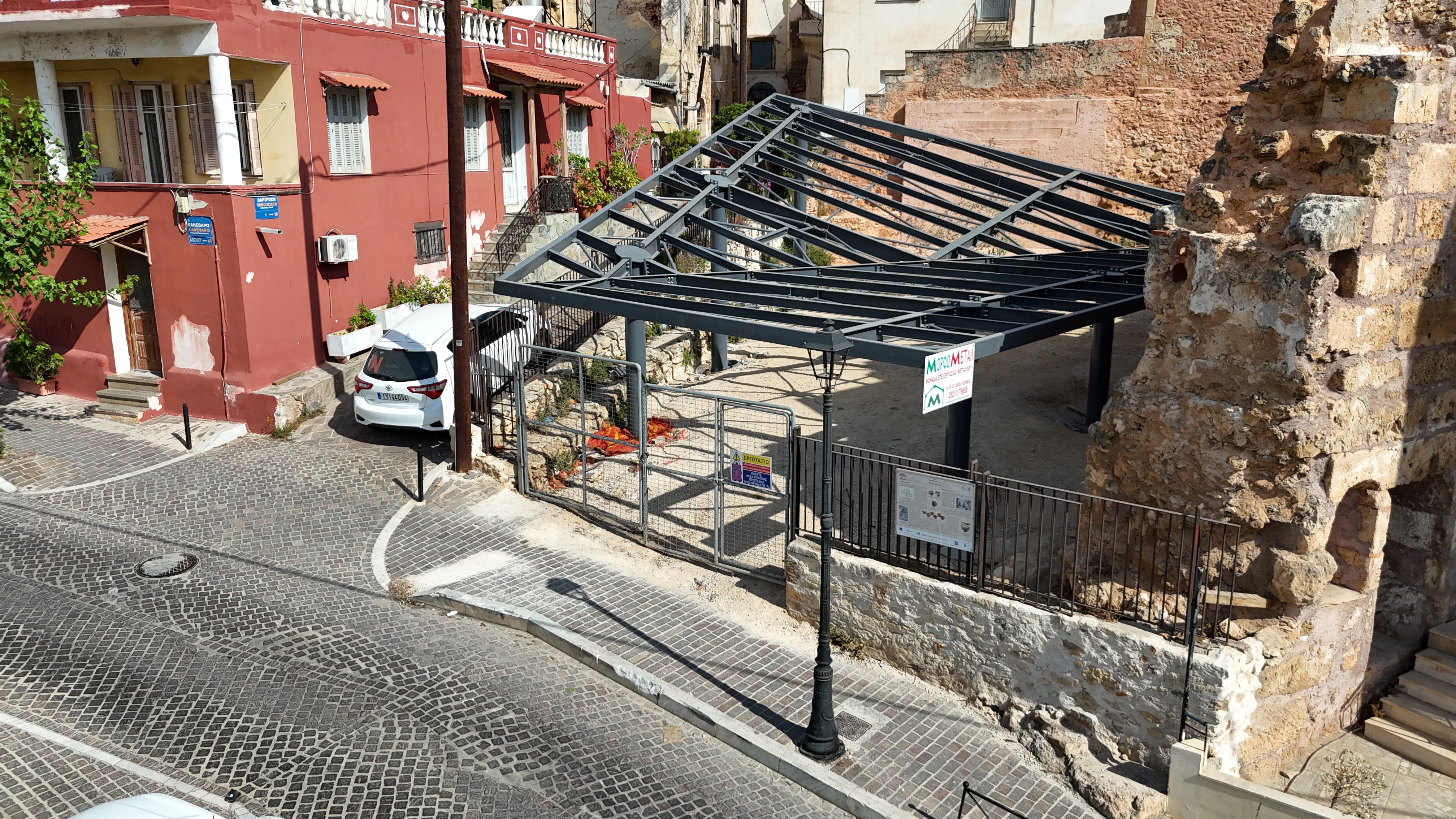 Μεταλλικός Σκελετός Στεγάστρου αρχαιολογικού χώρου στον Αρχαιολογικό Χώρο Μινωϊκής Κυδωνίας, Λόφος Καστέλλι Παλιάς Πόλης Χανίων