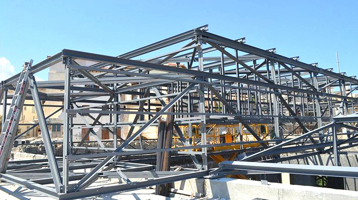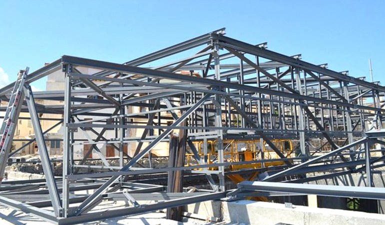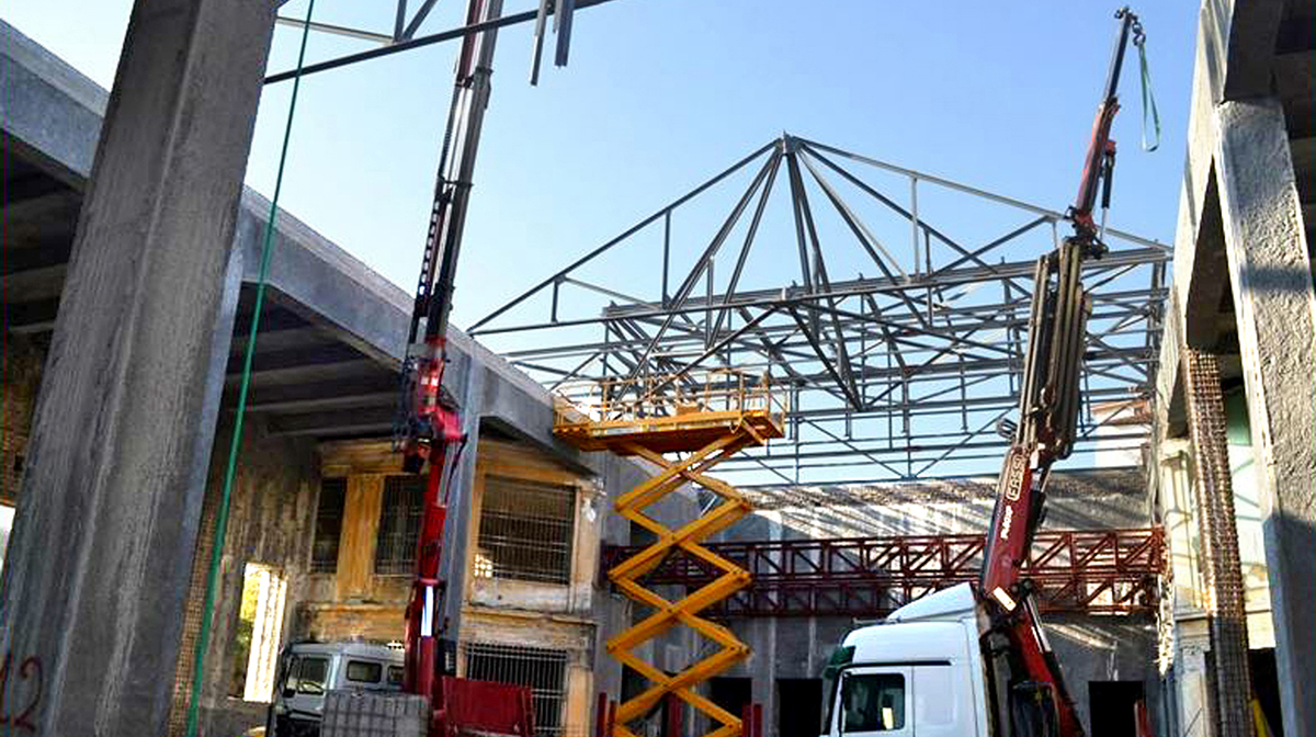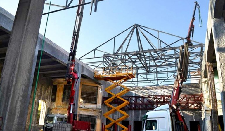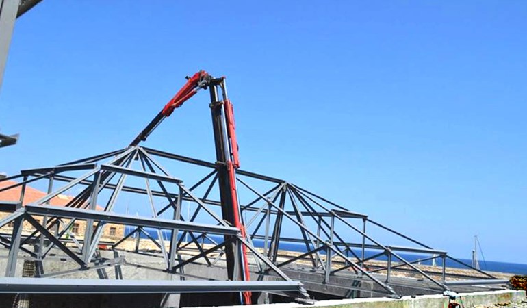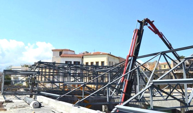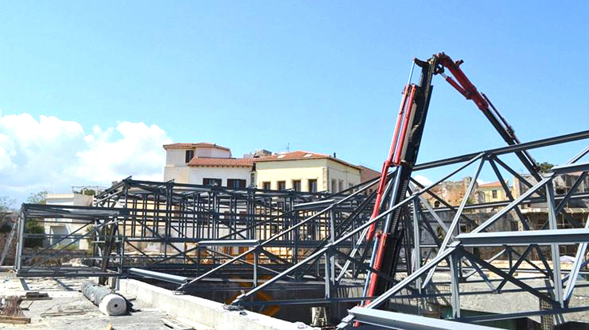 Κατασκευή και τοποθέτηση της νέας στέγης στη Δημοτική Αγορά Χανίων, στο πλαίσιο του έργου αποκατάστασης του κτηρίου.